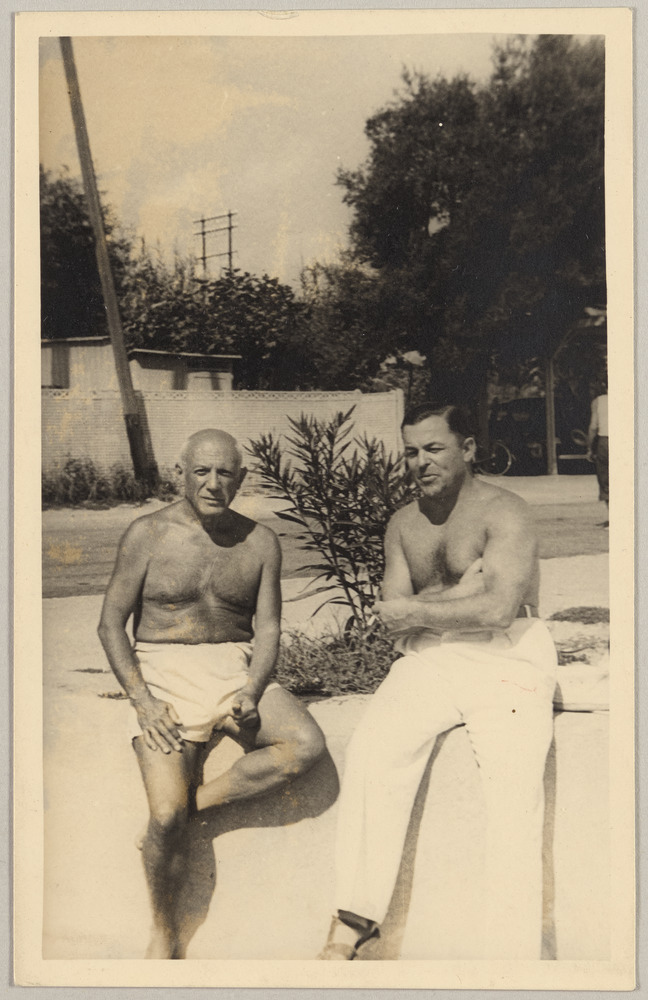 Pablo Picasso avec [André] Bibal à la plage de Golfe-Juan, [début années 1950]