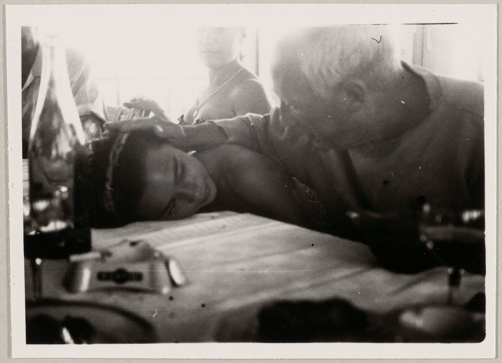 Pablo Picasso avec Caroline Lemort au restaurant Chez Tetou, Golfe-Juan, été 1954