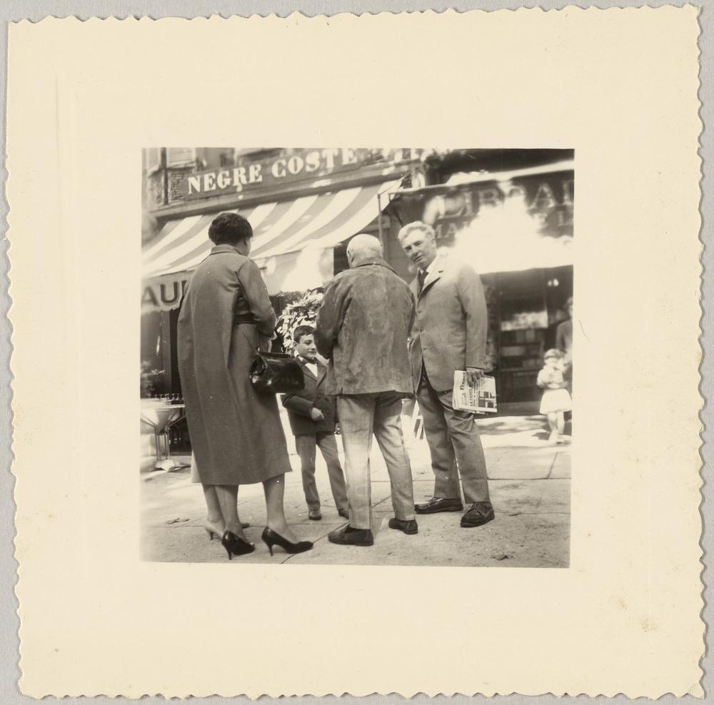 Pablo Picasso avec Edouard Pignon, Anna Maria Torra de Gili et un jeune garçon dans les rues de [Cannes], le 12 octobre 1958