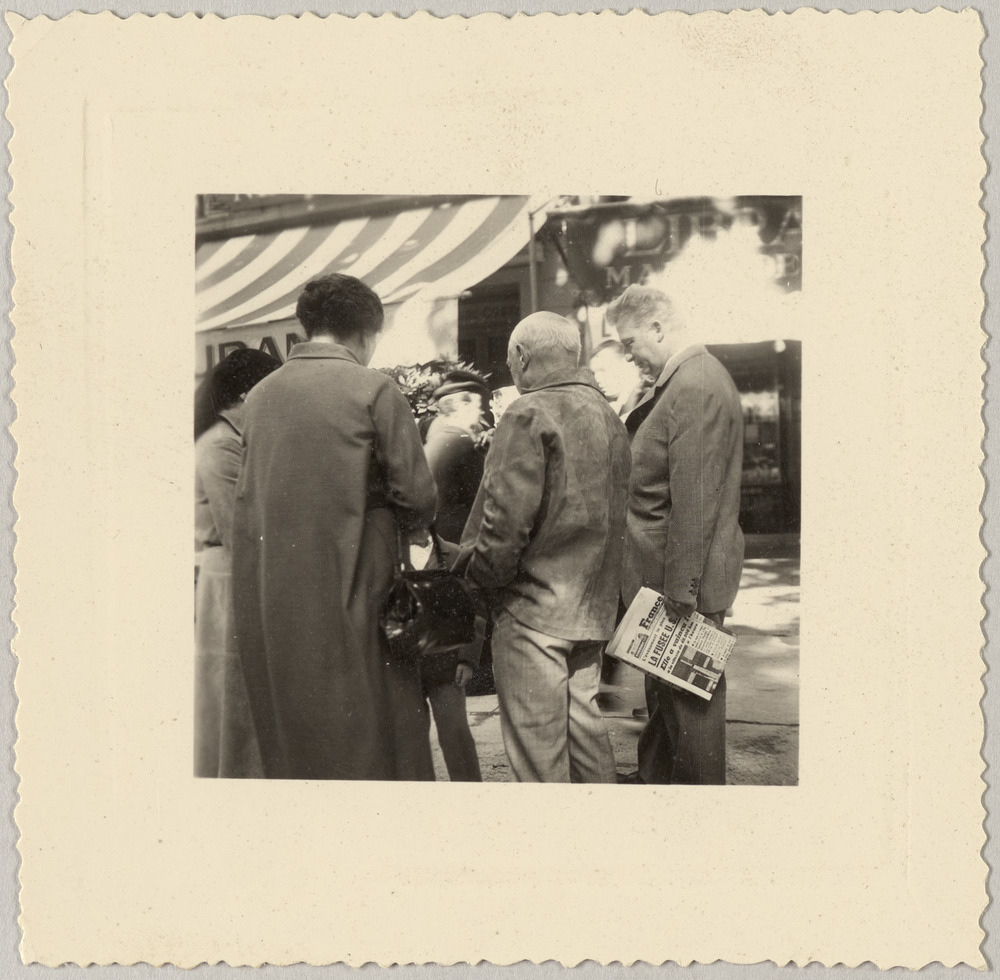 Edouard Pignon a à la main le journal de France Soir du 12 octobre 1958 "La Fusée U.S. fonce vers la Lune"