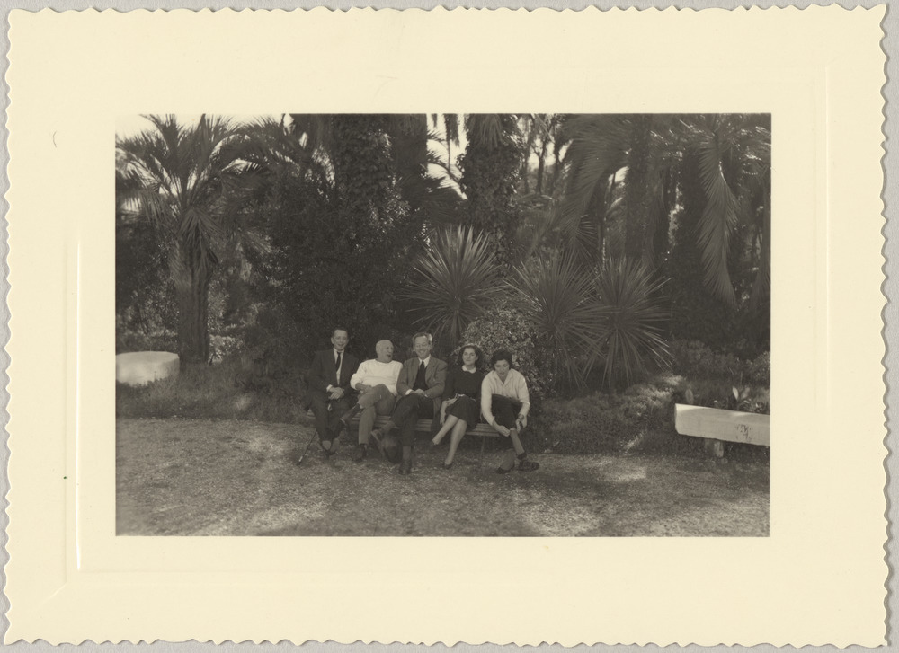 Pablo Picasso avec Gustavo Gili Esteve et des amis dans le jardin de La Californie, Cannes