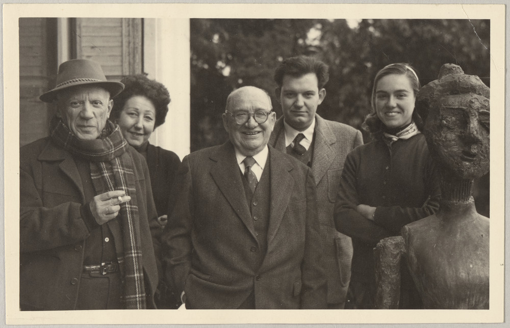 Pablo Picasso avec Jacint Reventós Bordoy, sa femme Maria Contí et leurs enfants, Jacint et Maria Rosa, sur le perron de La Californie, Cannes, en février 1956