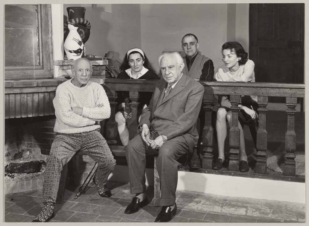 Pablo Picasso avec Jacqueline Roque, Eugenio Arias et [sa femme, Simone Francoual] et un ami