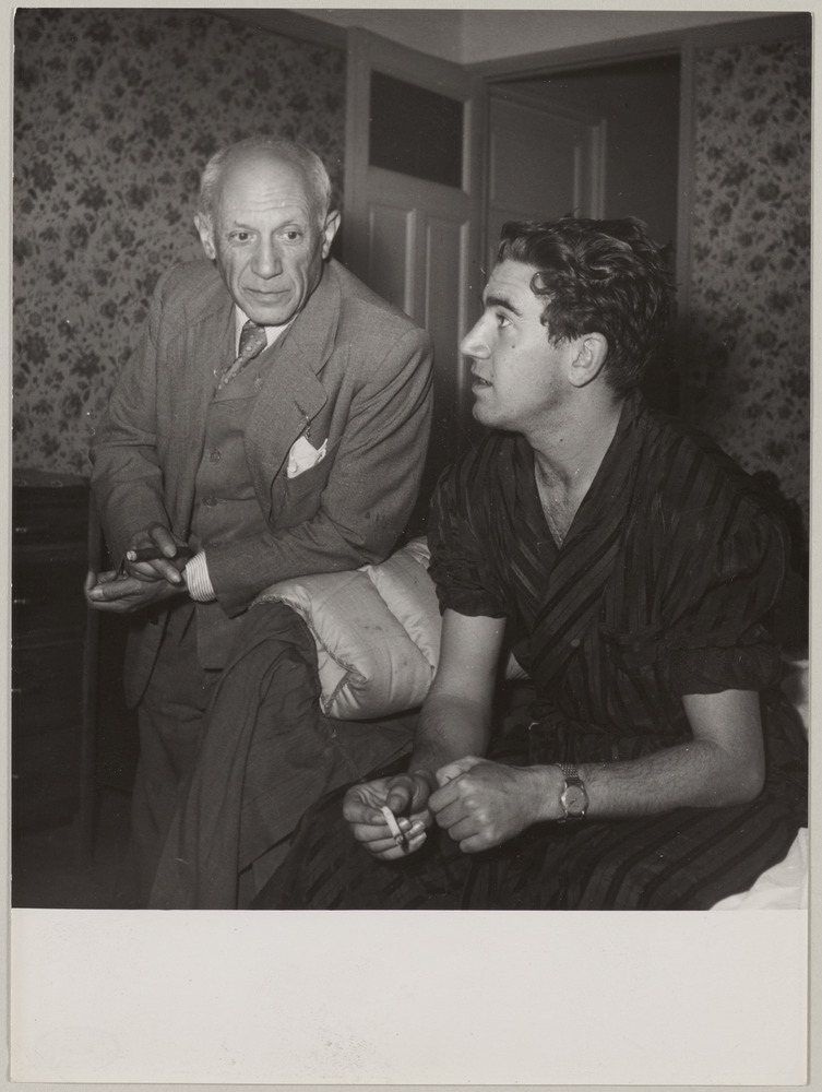 Pablo Picasso avec le matador Agustín Parra Dueñas "Parrita" dans une chambre d'hôtel de Nîmes, le 16 mai 1948