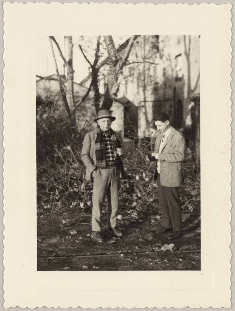 Pablo Picasso avec Lionel Prejger dans une cour [société Tritub de Prejger],…