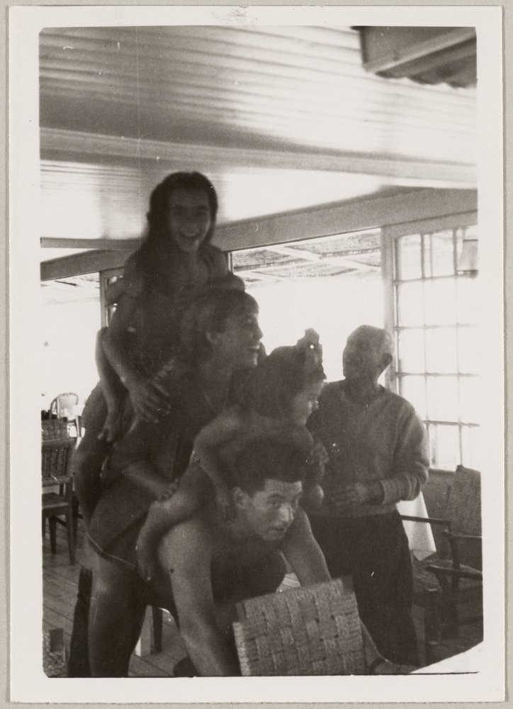 Pablo Picasso avec Maya Picasso, Caroline Lemort, Paloma, Claude et Paul Picasso au restaurant Chez Tetou, Golfe-Juan, été 1954