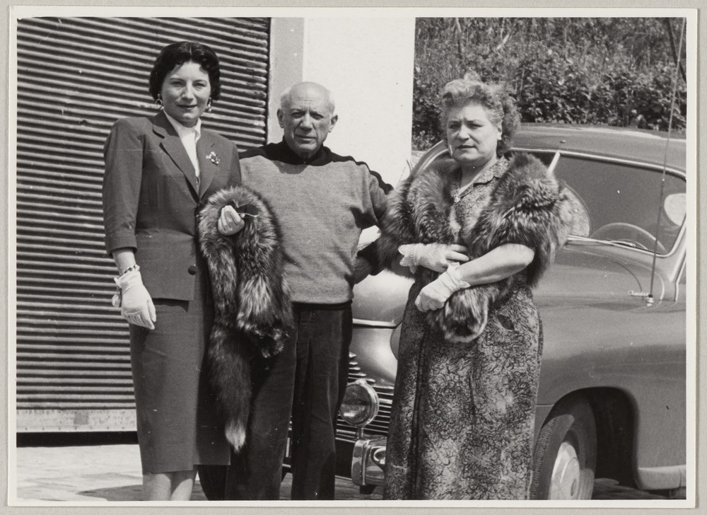 Pablo Picasso avec Mesdames Mezergues et Alzien à La Galloise, Vallauris, en mai 1954
