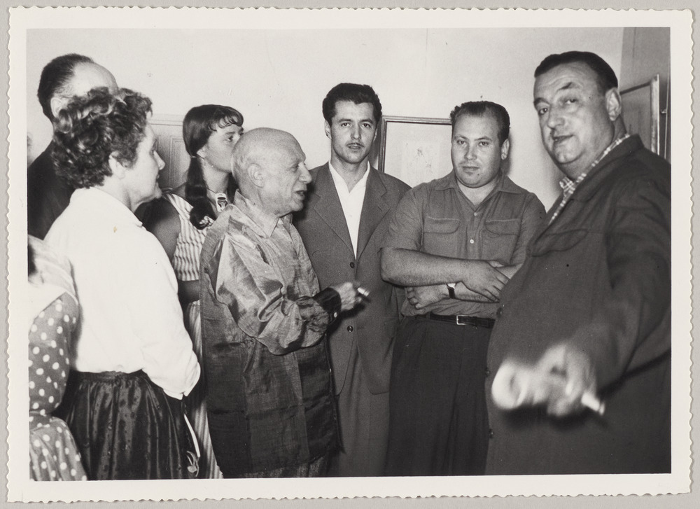 Pablo Picasso avec Paco Muñoz et des amis lors d'une exposition