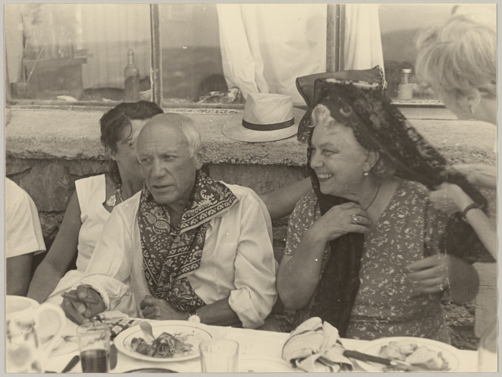 Pablo Picasso avec Paule de Lazerme et Miette Brune au Castellas, Céret, été 1954