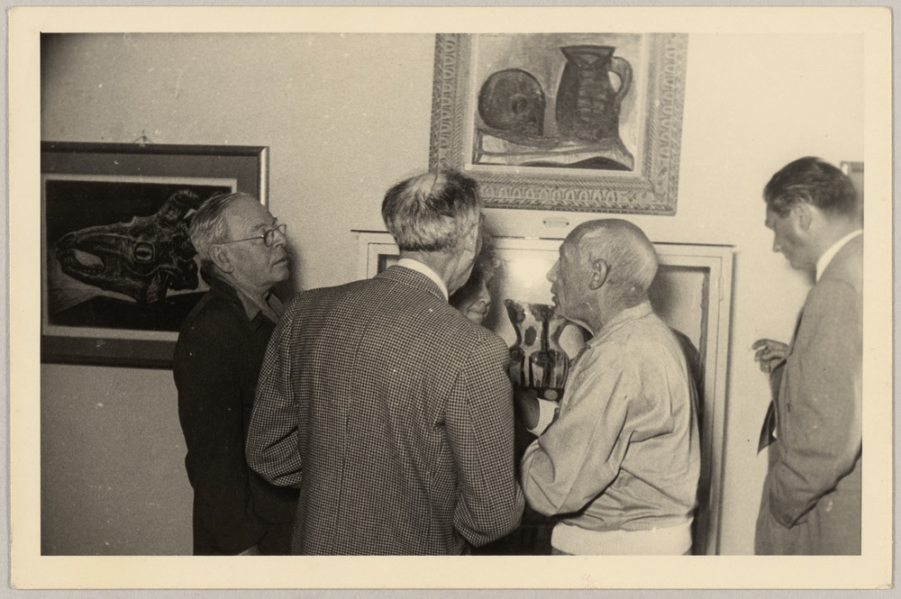 Pablo Picasso avec Pierre et Miette Brune, [Romuald Dor de la Souchère] et Paul Picasso au musée d'art moderne de Céret, en 1954