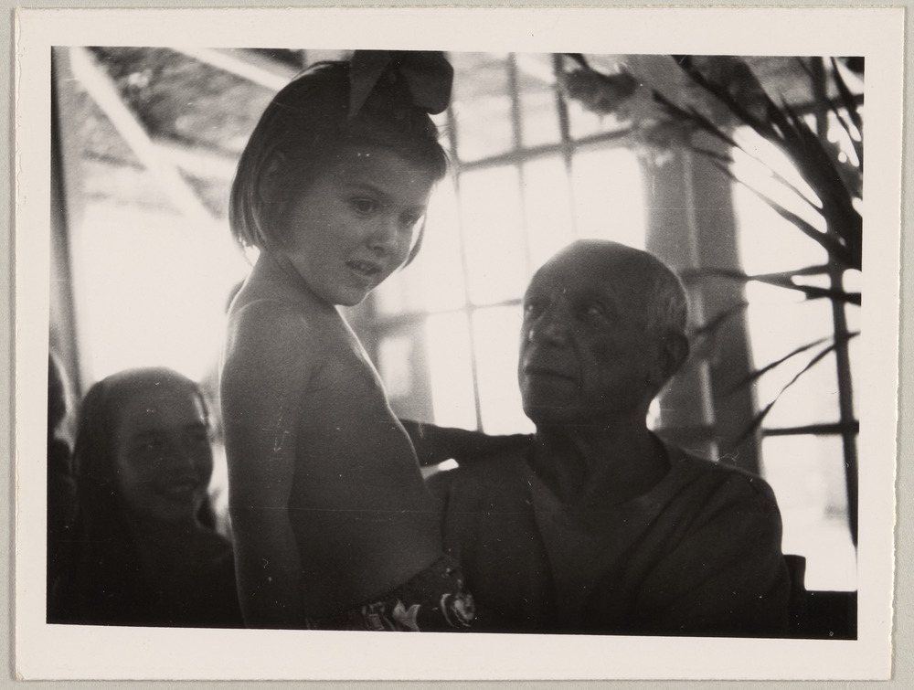 Pablo Picasso avec sa fille Paloma au restaurant Nounou, plage de Golfe-Juan, été 1954