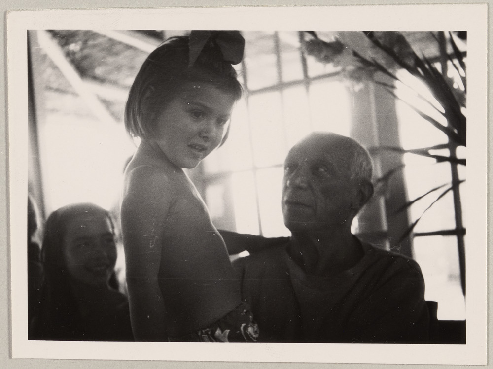 Pablo Picasso avec sa fille Paloma au restaurant Nounou, plage de Golfe-Juan, été 1954