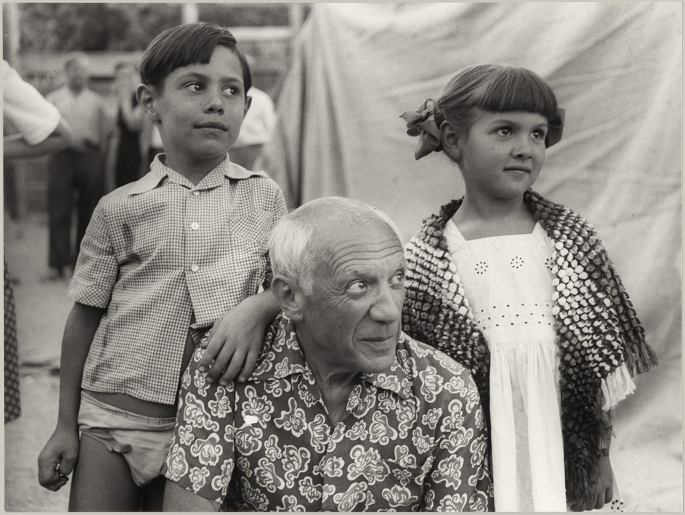 Pablo Picasso avec ses enfants, Claude et Paloma, en 1954