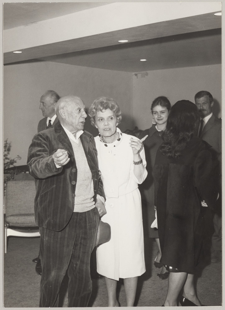 Pablo Picasso avec Suzanne Ramié lors de l'inauguration de la galerie Madoura, Cannes, début 1961