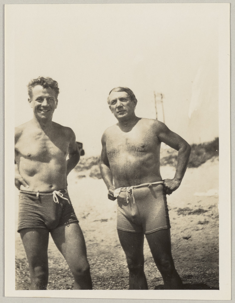 Pablo Picasso avec un ami sur la plage de Juan-les-Pins, en août 1931
