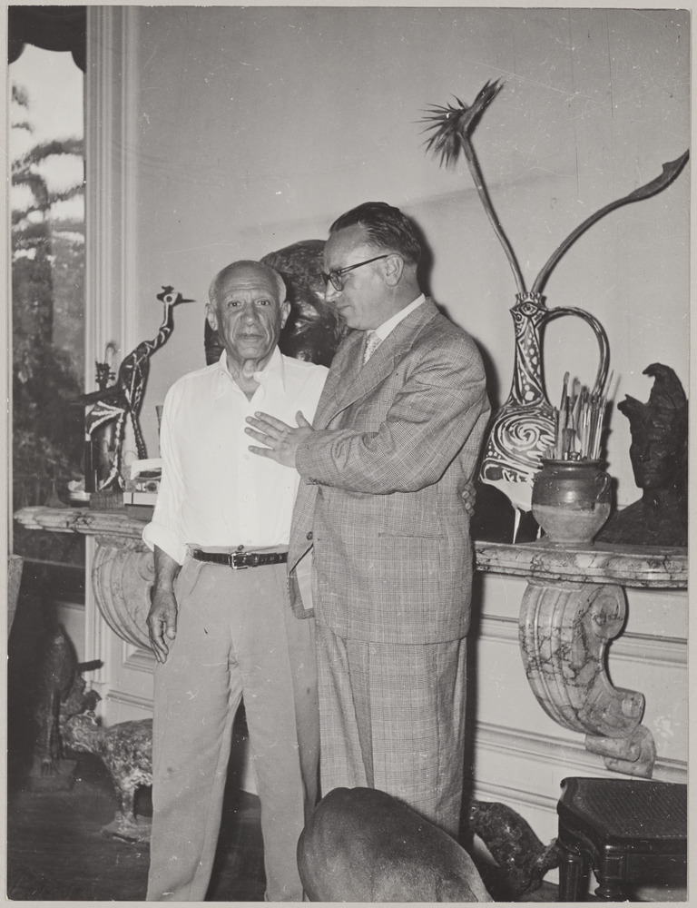 Pablo Picasso avec un homme à La Californie, Cannes, en 1955