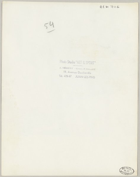 Cachet au dos, centré : "Photo Studio "ART & SPORT". A. HEMERY", Juan-Les-Pins
