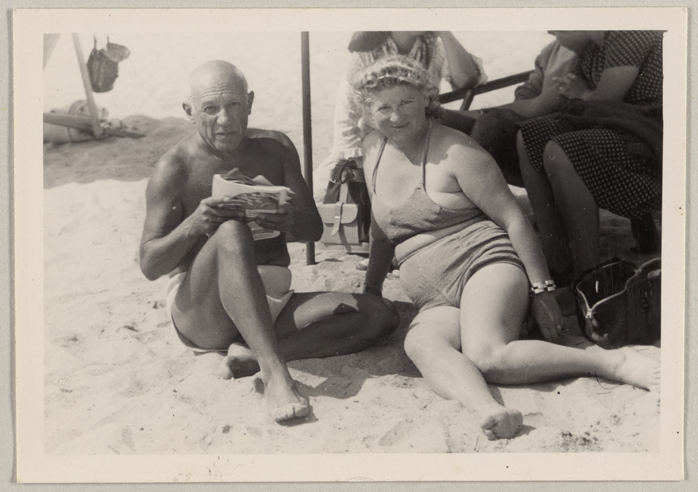 Pablo Picasso avec une amie sur la plage de Golfe-Juan, en [1948-49]