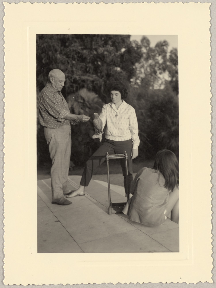 Pablo Picasso, Catherine Hutin avec un perroquet sur la main et Paloma Picasso…