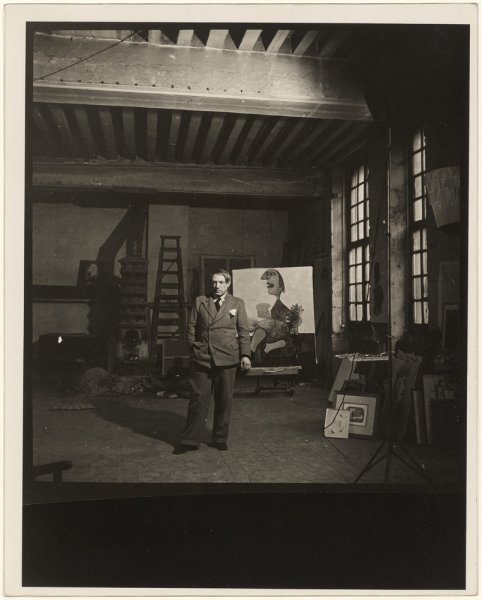 Pablo Picasso dans l'atelier des Grands-Augustins, Paris, en 1938