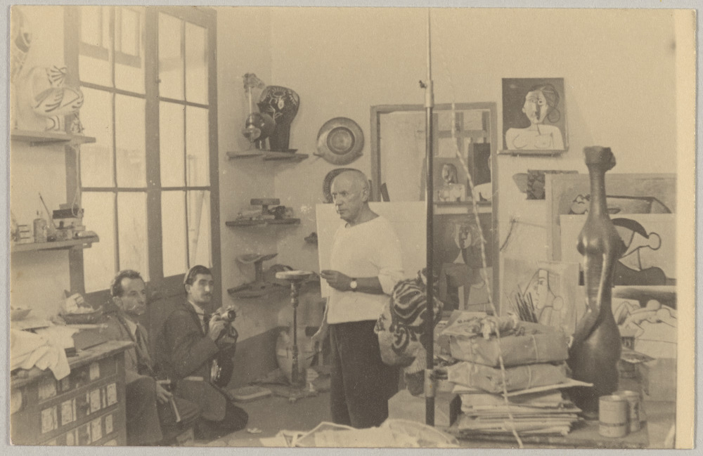 Pablo Picasso dans l'atelier du Fournas avec Edward Quinn et un collègue…