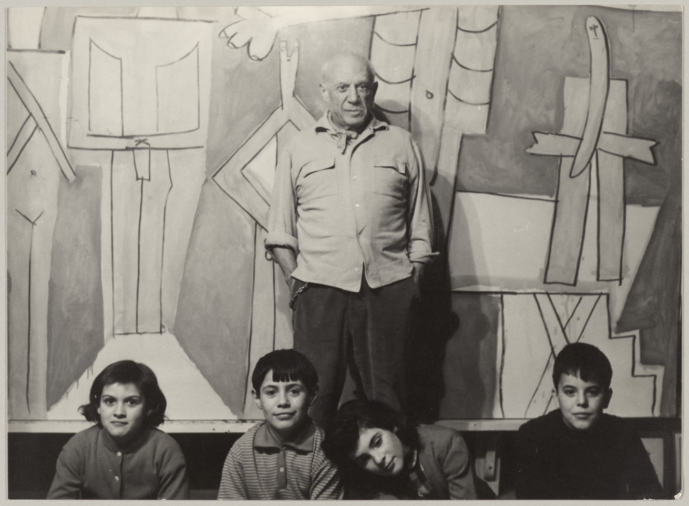 Pablo Picasso debout, avec ses enfants Paloma et Claude, Catherine Hutin et…
