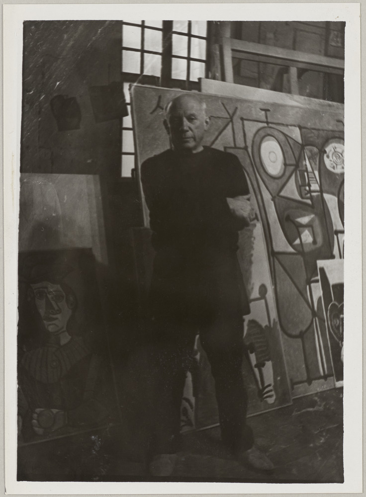 Pablo Picasso devant l'huile sur toile "La cuisine", dans l'atelier des Grands-Augustins, Paris, en [1948]