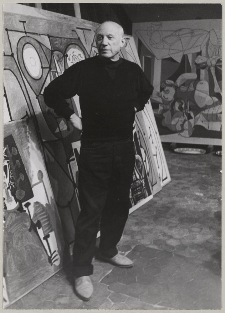 Pablo Picasso devant l'huile sur toile "La cuisine", dans l'atelier des Grands-Augustins, Paris, en [1948]