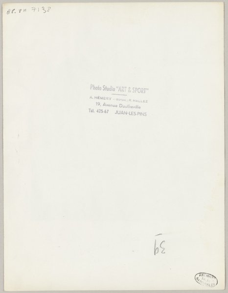 Cachet au dos, centré : "Photo Studio "ART & SPORT" - A. Hemery", Juan-Les-Pins