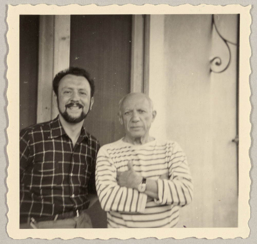 Pablo Picasso et Carlos Nadal sur le perron de La Galloise, Vallauris, en 1954