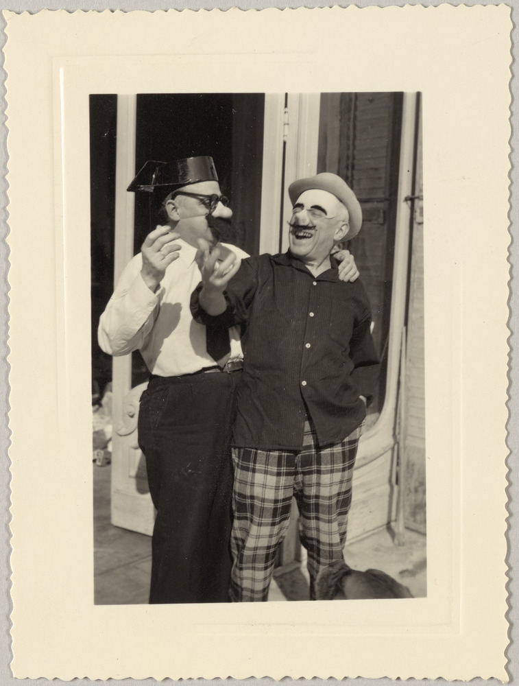 Pablo Picasso et [Douglas Cooper] déguisés, sur le perron de La Californie, Cannes