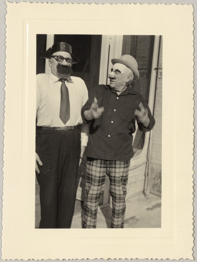 Pablo Picasso et [Douglas Cooper] déguisés, sur le perron de La Californie, Cannes