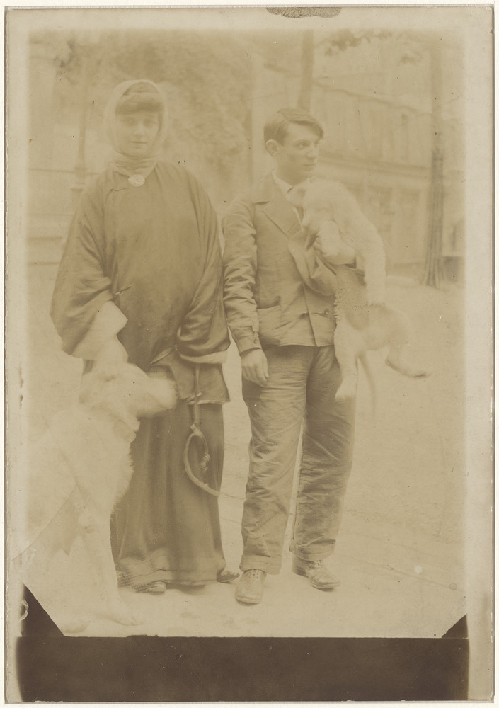 Pablo Picasso et Fernande Olivier avec leurs chiens, Féo et Frika, à Montmartre, Paris, vers 1904-06
