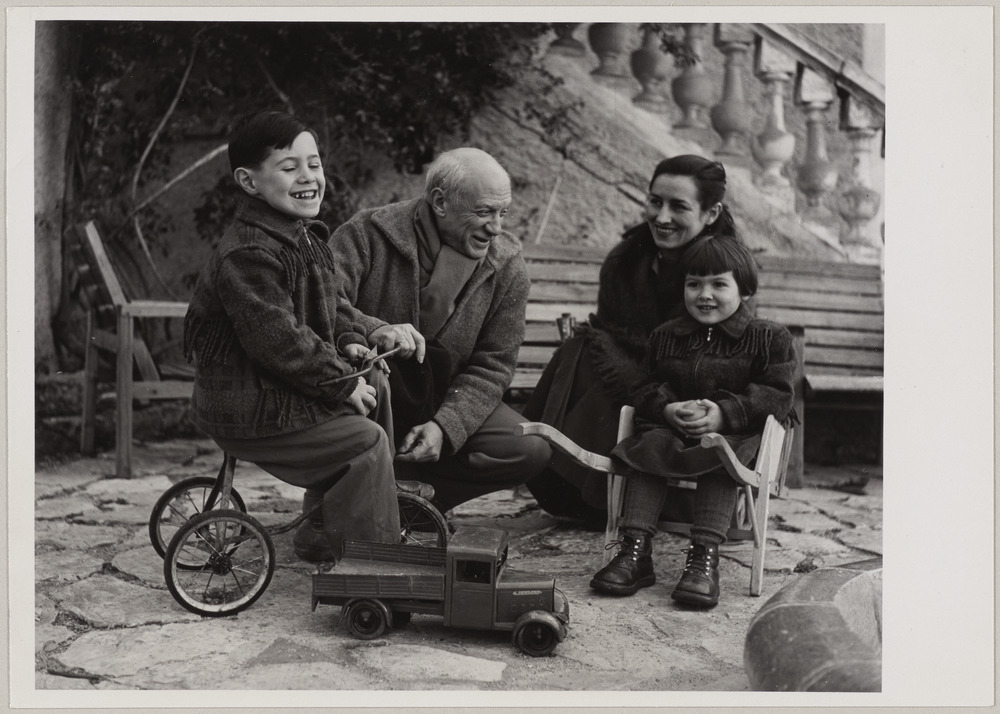 Pablo Picasso et Françoise Gilot avec leurs enfants, Claude sur un tricycle et…