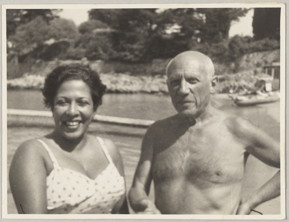 Pablo Picasso et [H. Rose] en maillot de bain sur la plage, vers [1959]