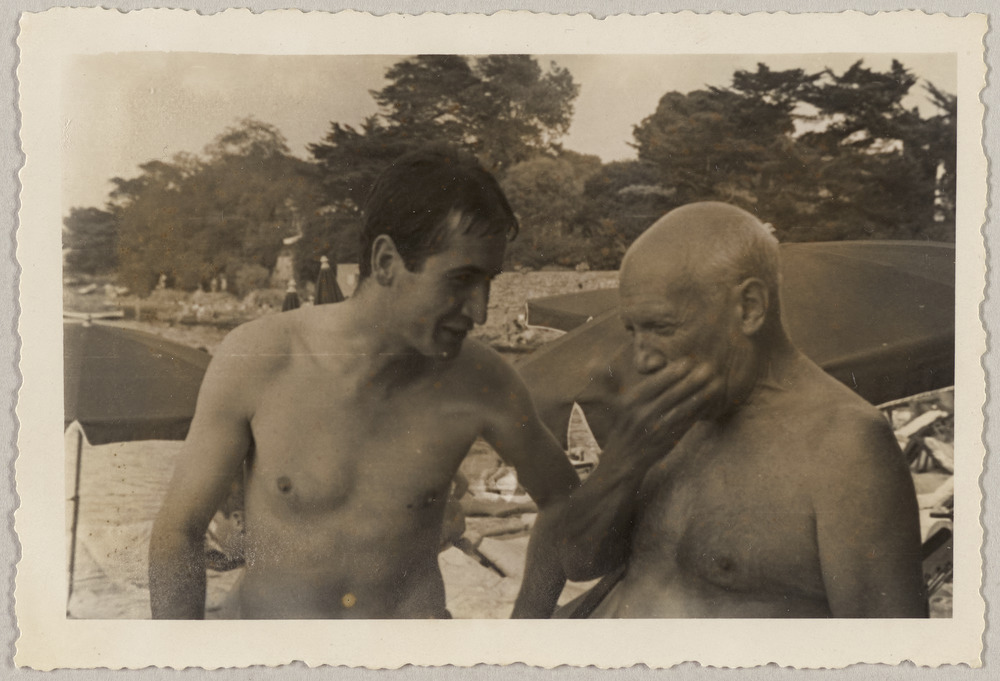Pablo Picasso et Jose Luis Pico sur la plage de la Garoupe, Cap d'Antibes, en été 1956