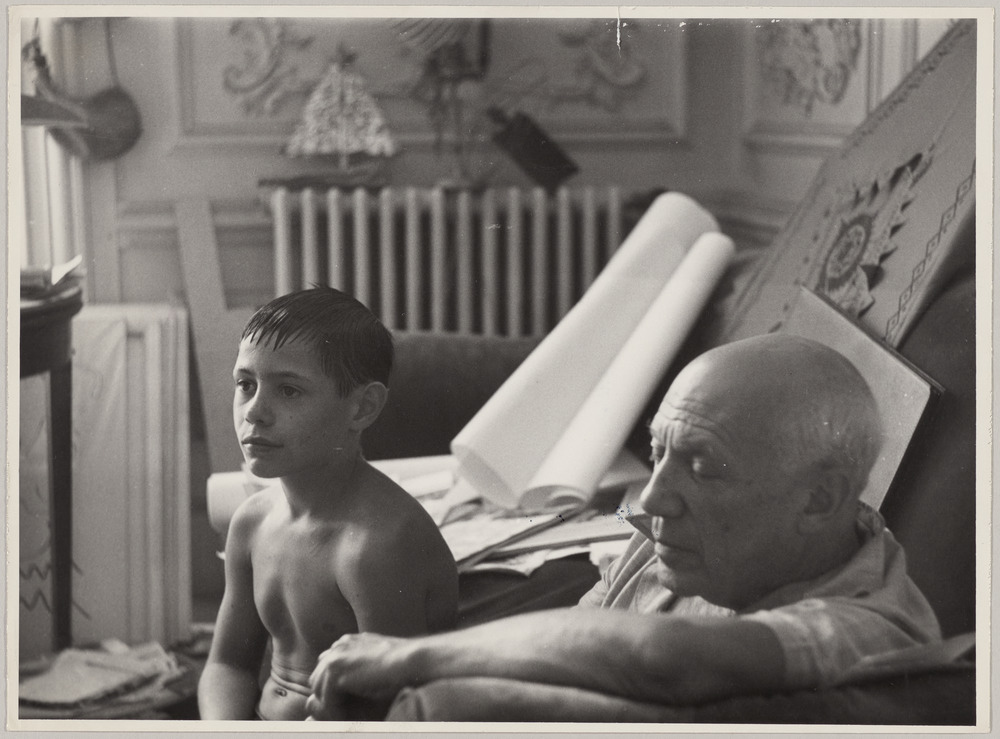 Pablo Picasso et son fils Claude sur le canapé de La Californie, Cannes