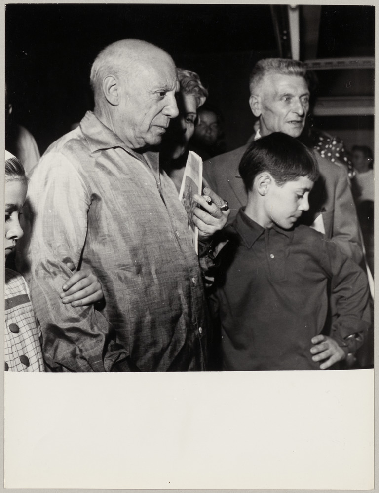 Pablo Picasso et Suzanne Ramié avec Claude et Paloma lors d'une exposition, Vallauris, en juillet 1958