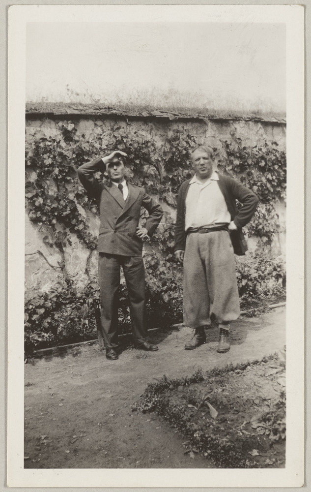 Pablo Picasso et un ami dans un jardin [Boisgeloup, Gisors], années 1930