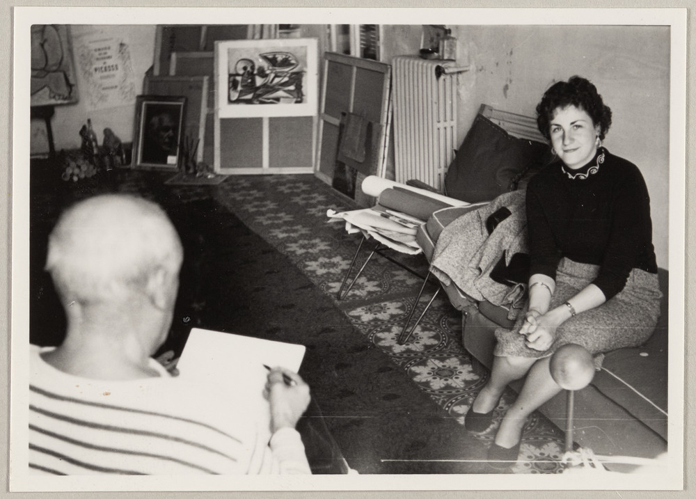 Pablo Picasso et une femme non identifiée à La Galloise, Vallauris, circa 1952