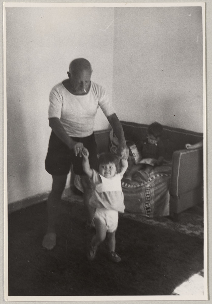 Pablo Picasso guidant les premiers pas de sa fille Paloma, à La Galloise, Vallauris, en 1950