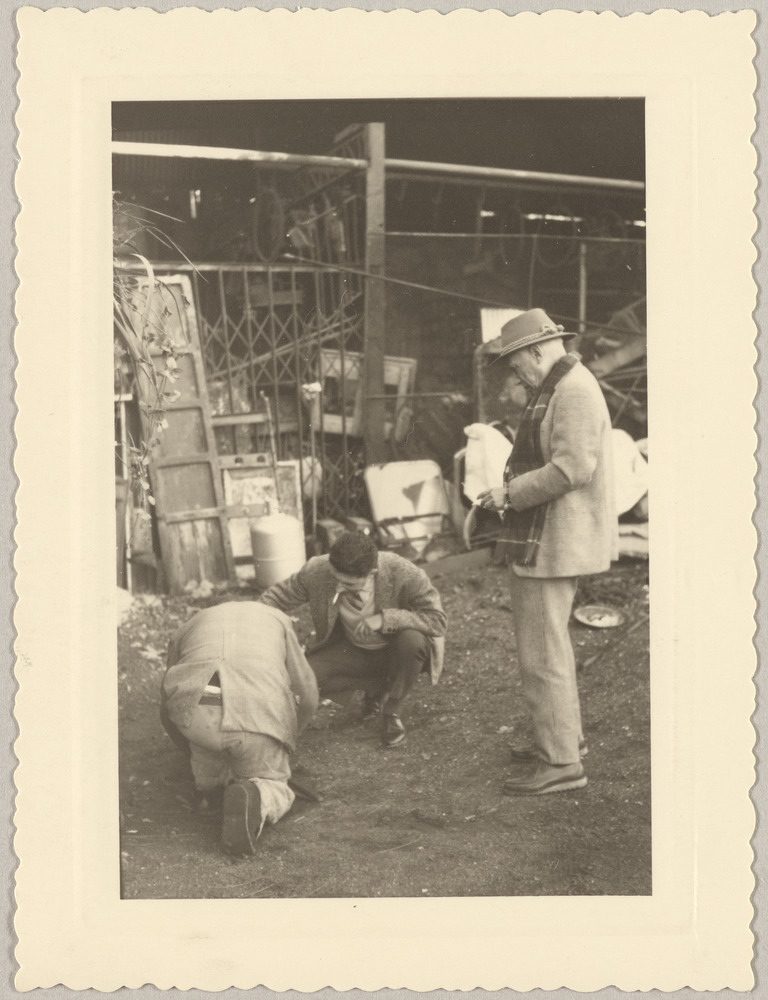 Pablo Picasso, Lionel Prejger et un homme non identifié dans une cour [société…