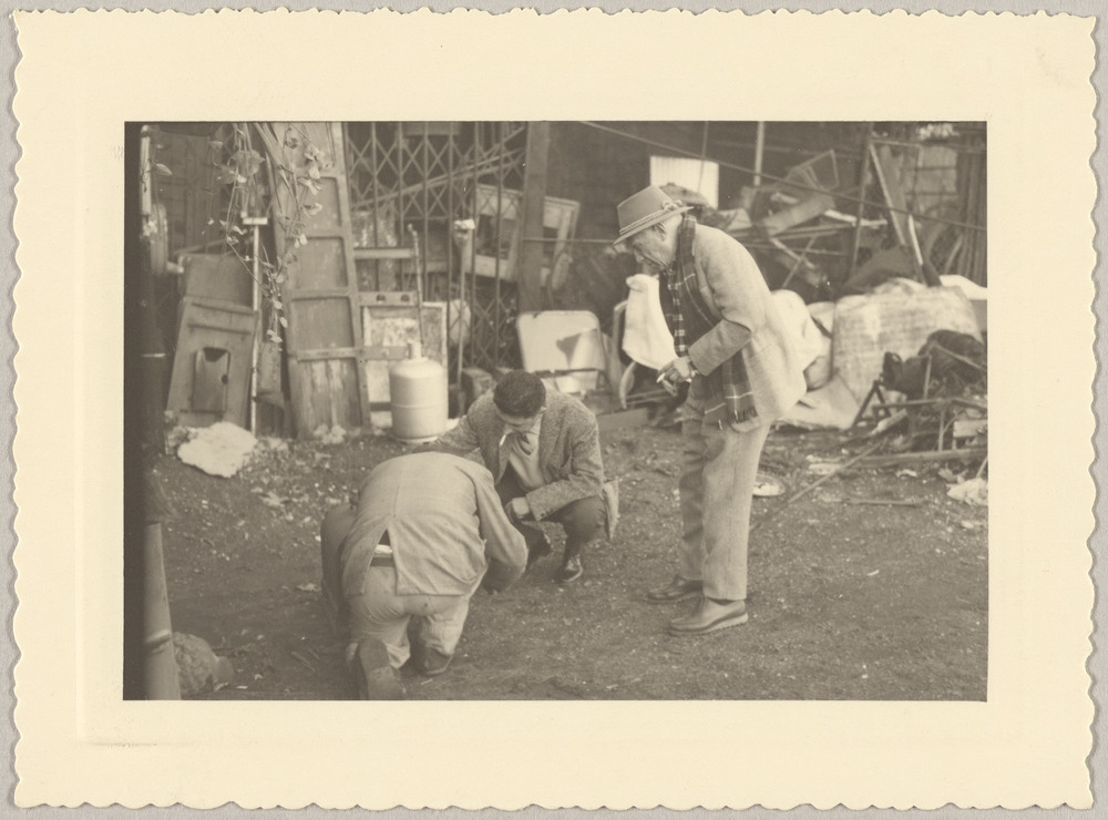 Pablo Picasso, Lionel Prejger et un homme non identifié dans une cour [société…