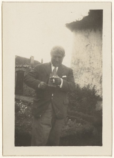 Pablo Picasso manipulant un appareil photo dans le jardin de Gertrude Stein et d'Alice Toklas, Bilignin, en été 1931