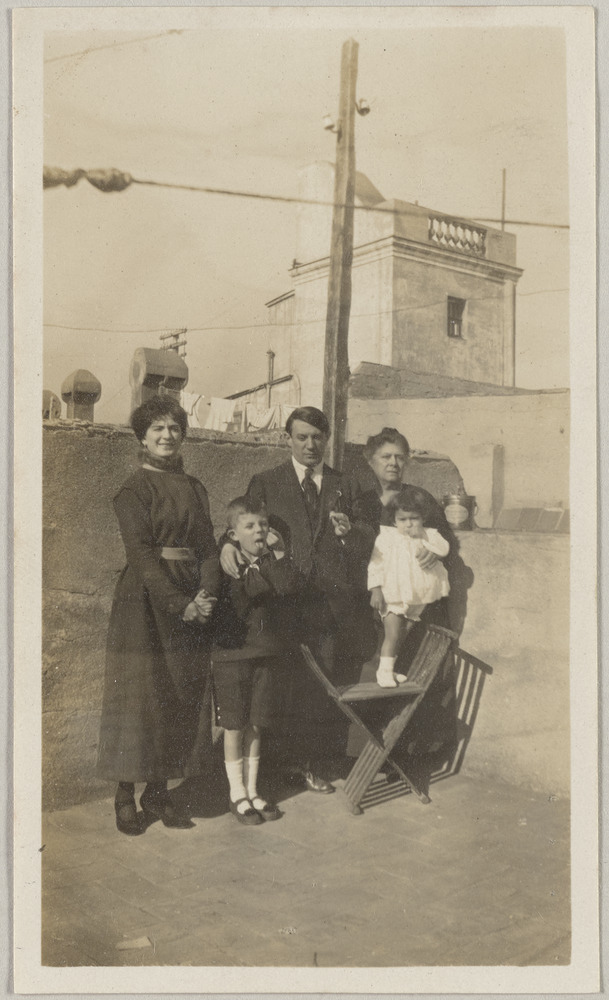 Pablo Picasso, María Picasso López, Lola Ruiz Vilató et ses fils aînés, Juanín et José, sur le toit-terrasse du domicile familial du Carrer de la Mercè, Barcelone, en juin-juillet 1917