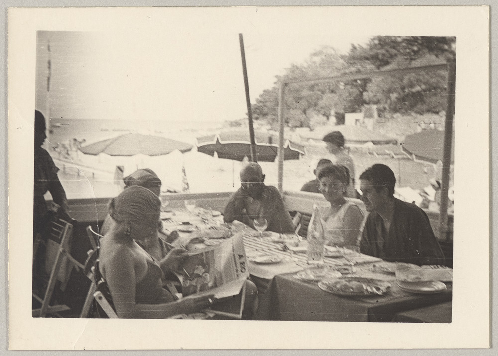 Pablo Picasso, Maya, Marie et José Luis Pico au restaurant, plage de la Garoupe…