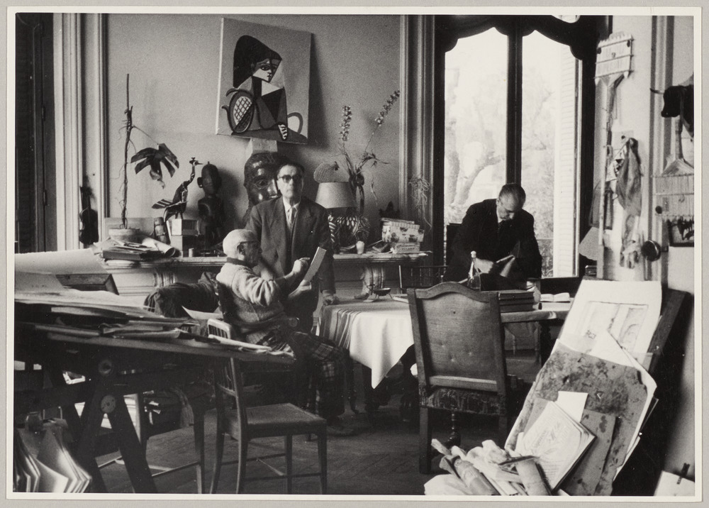 Copié dans le presse-papier :Pablo Picasso montrant des documents à deux hommes dans l'atelier de La… - s.d. - https://cep.museepicassoparis.fr/explorer/pablo-picasso-montrant-des-documents-deux-hommes-dans-latelier-de-la-apph6817
