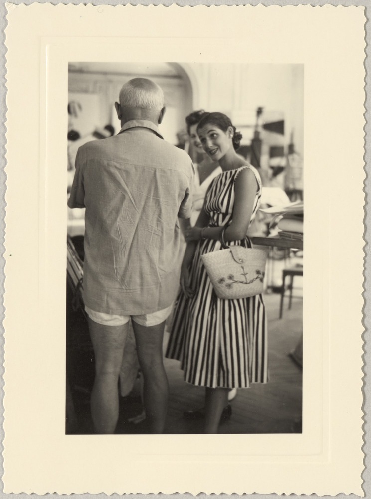 Pablo Picasso montrant des œuvres à Margaret Silberman et une femme non identifiée à La Californie, Cannes