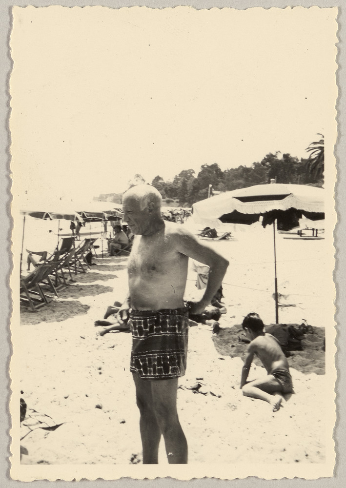 Pablo Picasso sur la plage de Golfe-Juan, vers 1947-48