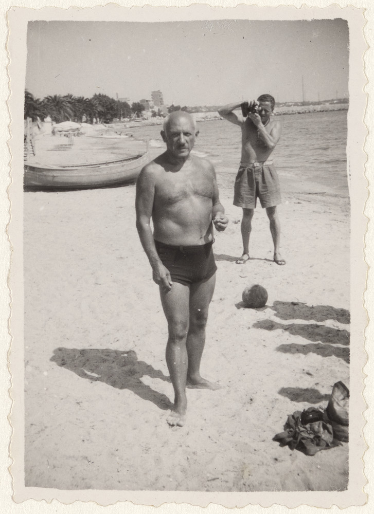 Pablo Picasso sur la plage, début des années 1950
